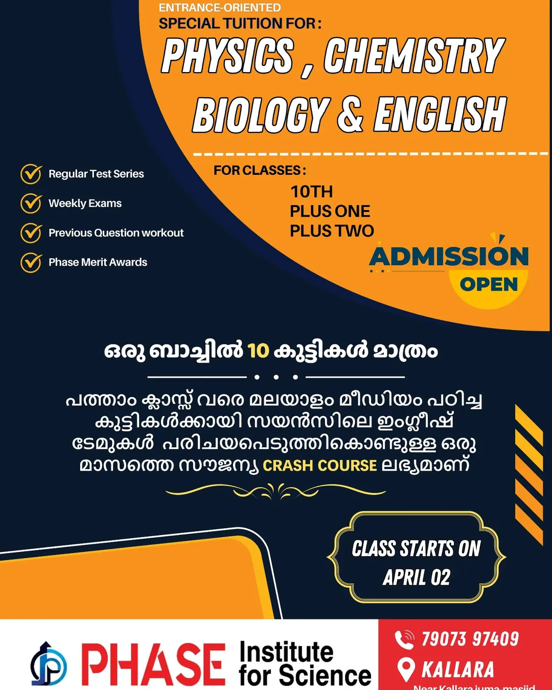 If your child is weak for subjects like Chemistry ,Physics ,Biology and english, we are ready to improve their skills of learning and gave individual attention for each students .
